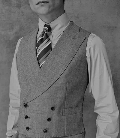 Length is one of the most important elements of a well-fitting waistcoat. It should fully cover the waistband of your trousers, ensuring no shirt fabric shows between the two. Proper fit also depends on the trousers sitting at the natural waist. If your waistcoat needs a length adjustment, visit us for a fitting, and our Master Tailor will offer expert guidance.